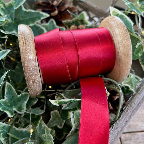 This Berry Red (or dark red as we like to call it) double faced satin ribbon is the perfect red tone for the festive season.