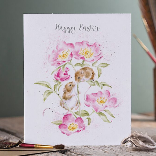 A beautifully illustrated card by Wrendale Designs featuring two field mice.
