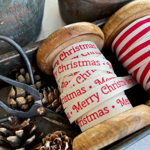 This pretty ribbon may be new to our wrapping room for Christmas 2025 but with its vintage feel its already a staple we can’t do without.